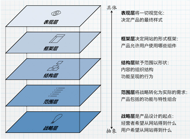 根據Jesse Garrett的產品設計層次模型,重新梳理產品定位,探索在新的視覺形式框架下形成清晰的可供性感知。