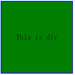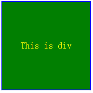 <style> div{ width:100px; height:100px; background-color:red; border:3px solid blue; overflow:hidden; transition:width 1s,height 2s,background-color 1s,line-height 2s,font-size 2s; line-height:100px; text-align:center; } div:hover{ background-color:green; width:300px; height:300px; line-height:300px; font-size:2em } div:active{ color:yellow; } </style> <div>This is div</div>